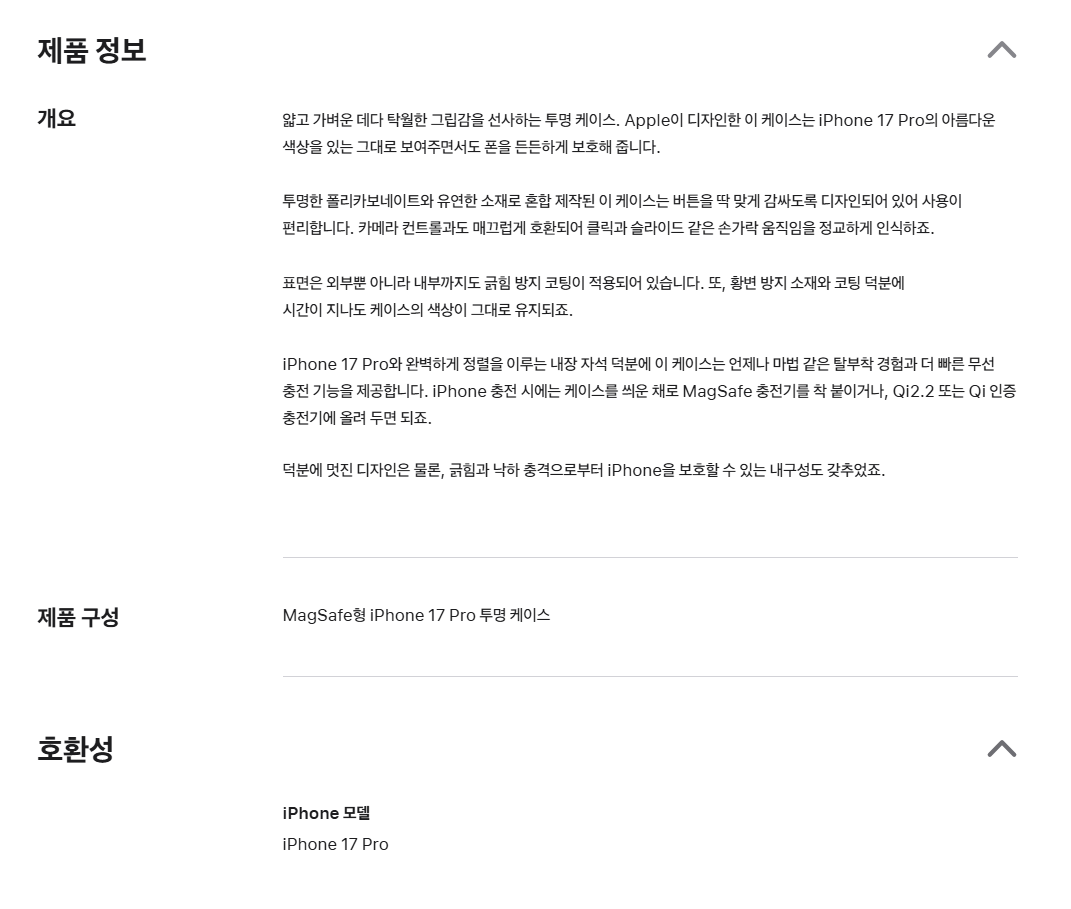 | 품명 및 모델명 | iPhone 17 Pro Clear Case with MagSafe_A3564 | 인증/허가 사항 | 해당없음 |