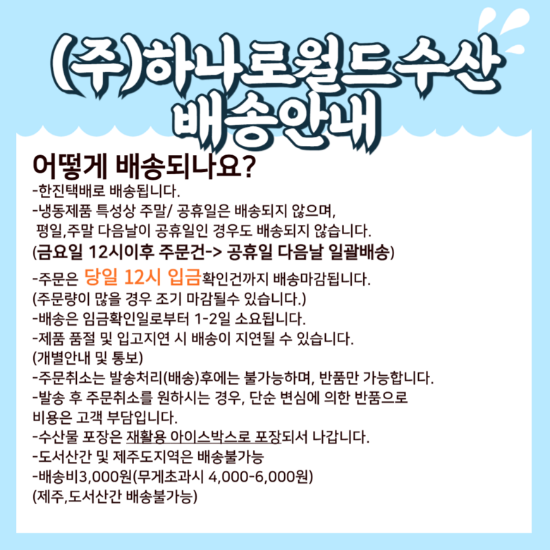 | 배송방법 | 신선/냉장/냉동 | 배송비 | 무료배송 - 도서산간 지역 배송불가 |