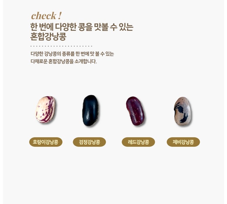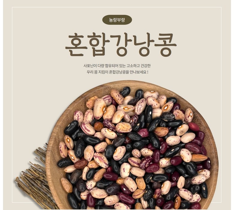 | 품목 또는 명칭 | 혼합강낭콩(건조) | 포장단위별 내용물의 용량(중량),수량,크기 | 혼합강낭콩 1kg 2kg |