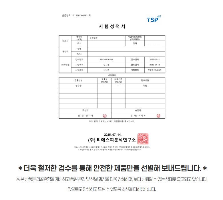 | 생산자(수입자) | 농랑부랑 | 원산지 | 충청남도 |