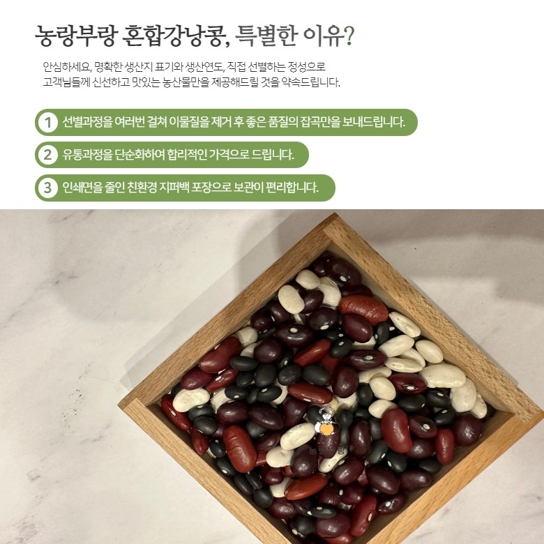 | 생산자(수입자) | 농랑부랑 협력사 | 원산지 | 수입산(중국/미국) |