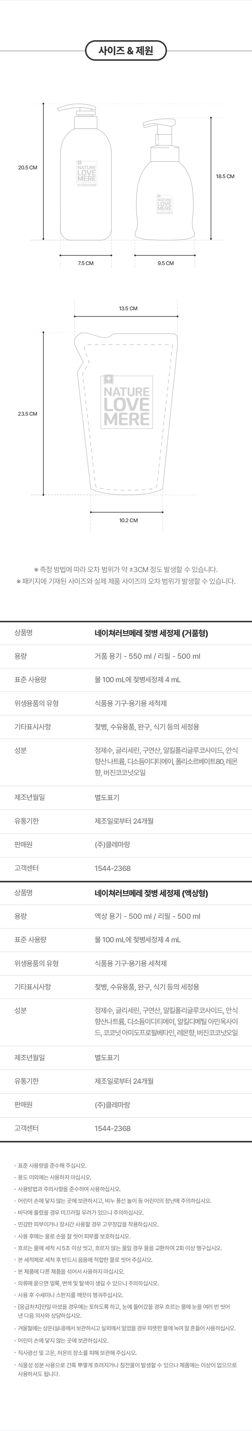 | 품명 및 모델명 | 네이쳐러브메레 젖병 세정제 거품형 | 인증/허가 사항 | 위생용품 |
