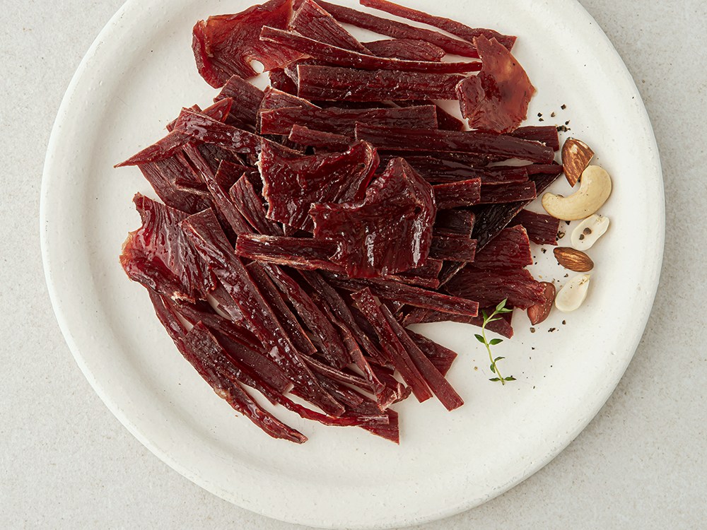 입이 심심하거나 맥주 한 잔이 생각날 때, 가장 먼저 떠오르는 간식. 바로 소고기 육포죠. 얇게 썬 소고기를 훈연해 짙은 육향을 살렸는데요. 씹을수록 구수한 감칠맛과 달짝지근한 풍미가 입안 가득 퍼진답니다. 야심한 밤 간식으로, 혹은 혼자 영화 볼 때 곁들이는 안주로도 제격이에요.