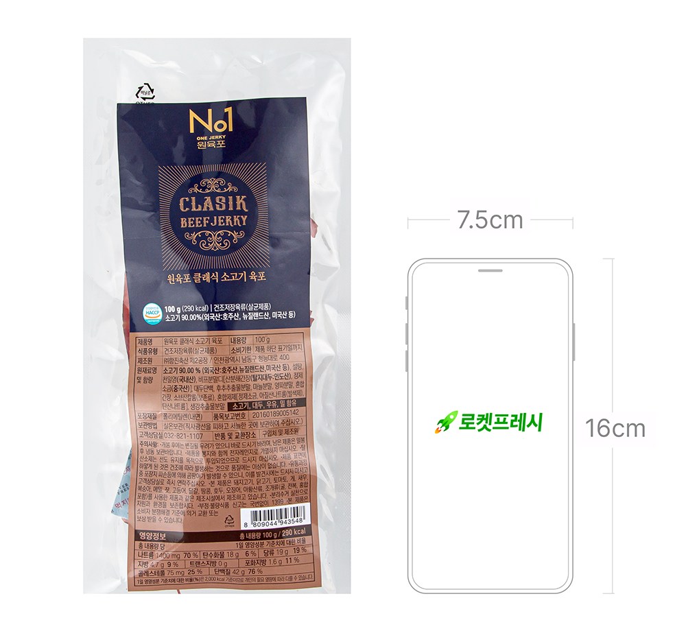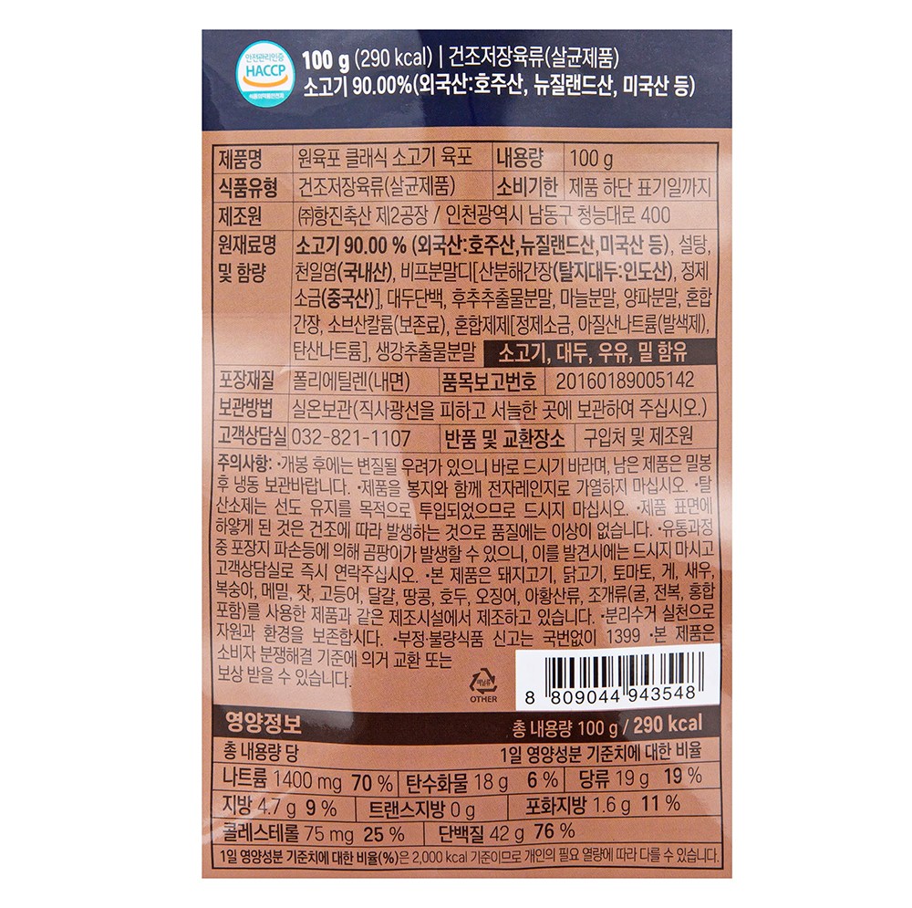 | 제품명 | 원육포 클래식 소고기 육포 | 식품의 유형 | 컨텐츠 참조 |