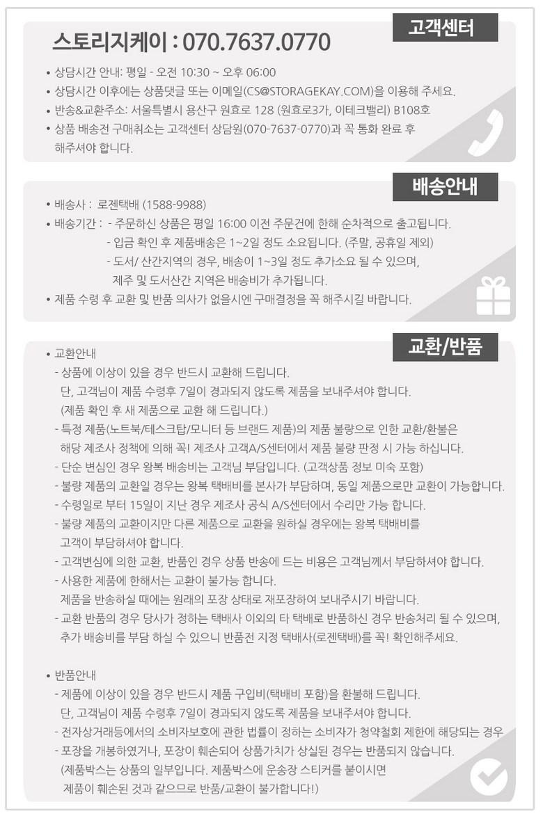 e-mail | cs@storagekay.com | 연락처 | 070-7637-0770 |