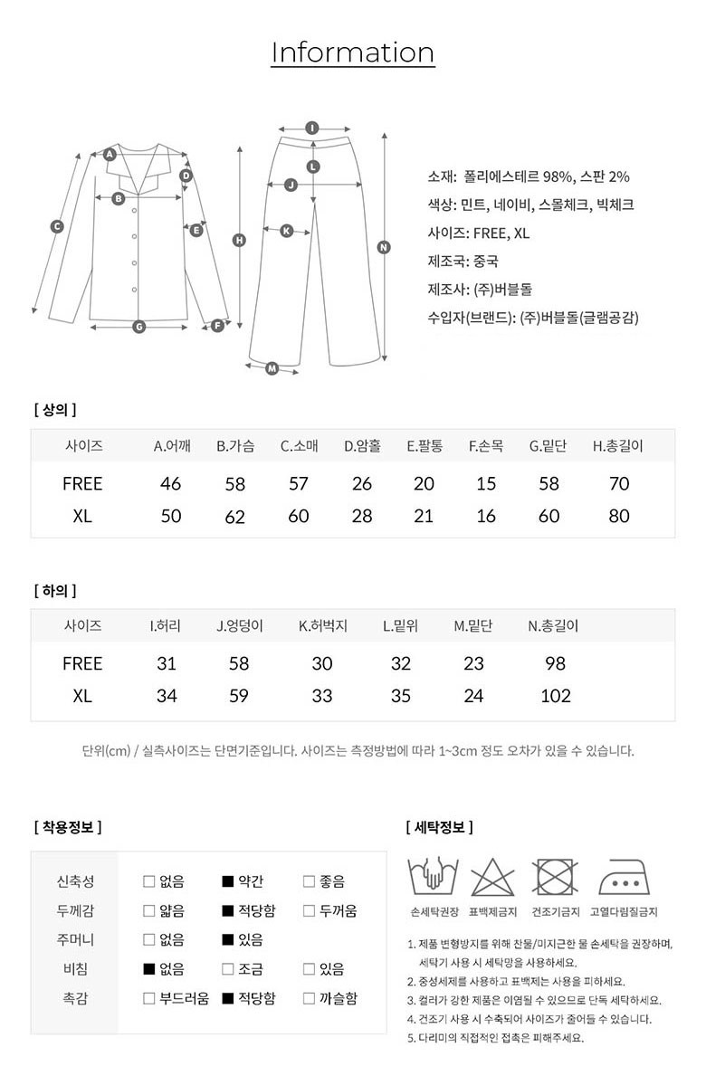 | 제조국 | 중국 | 세탁방법 및 취급시 주의사항 | 컨텐츠 참조 |