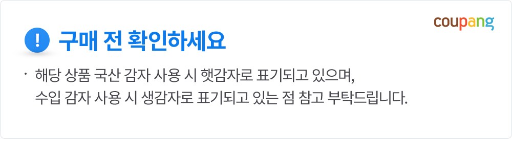 ※ 감자 원산지는 수급에 따라 변경가능성이 있사오니, 본제품으로 확인하여 주시기 바랍니다.