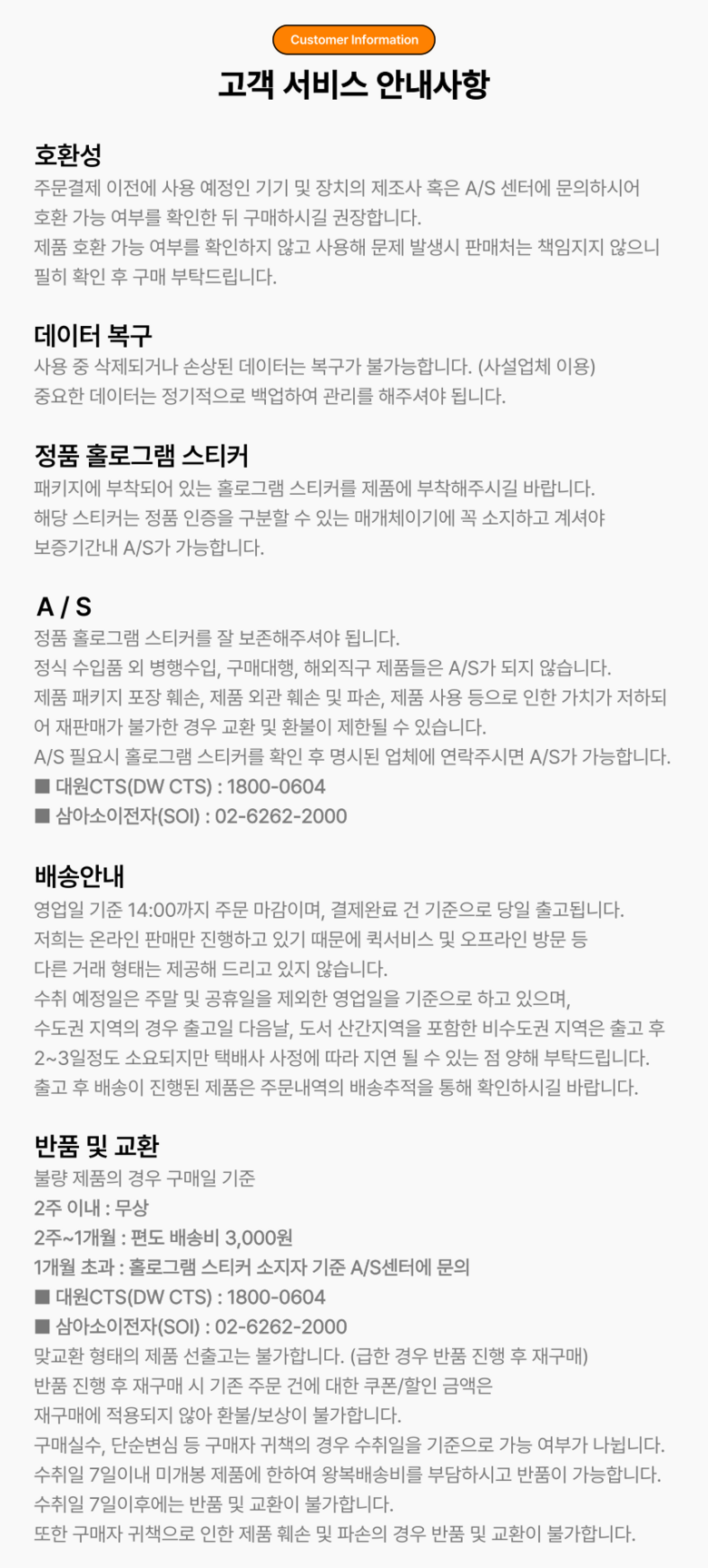 - ㆍ교환/반품에 관한 일반적인 사항은 판매자가 제시사항보다 관계법령이 우선합니다.