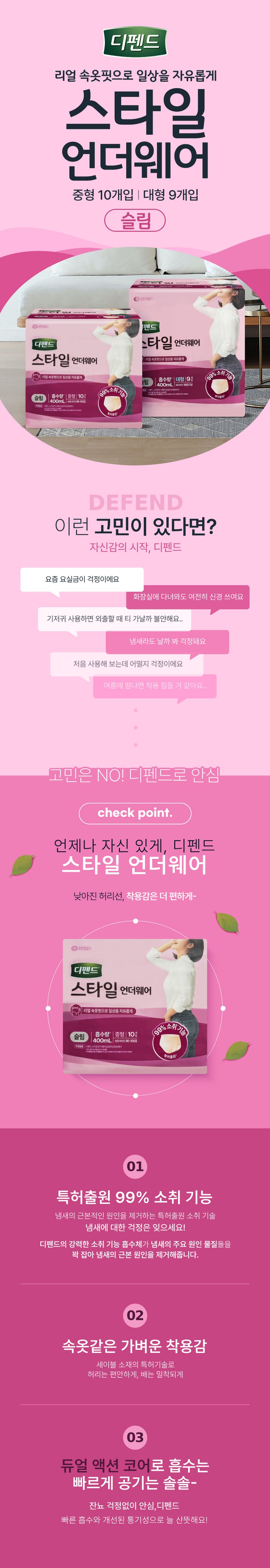 | 품명 및 모델명 | 디펜드 스타일 슬림 여성 중형, 대형 | 인증/허가 사항 | 위생용품 |