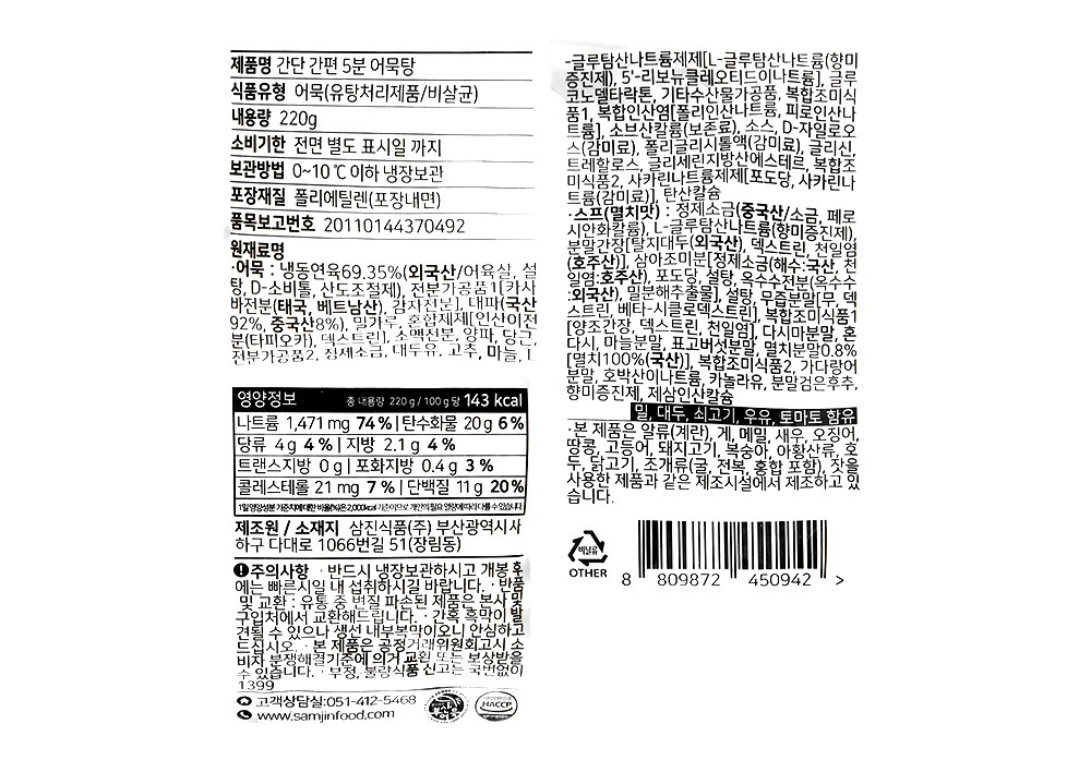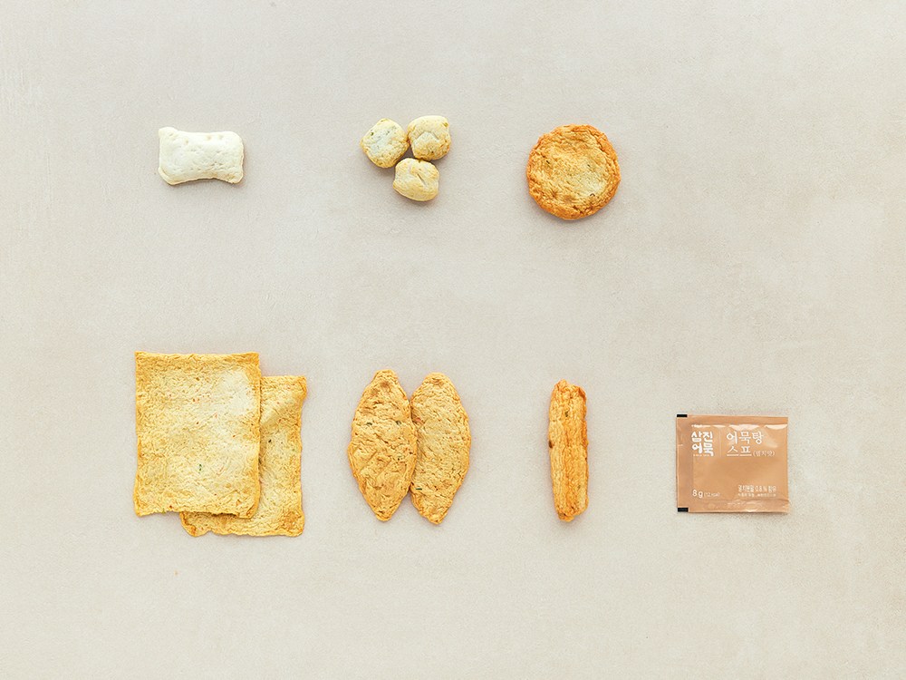 · 여섯 가지 모양의 어묵과 멸치맛 어묵탕 스프로 구성되어 있습니다.