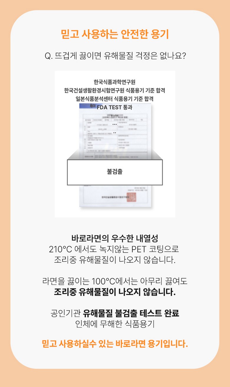 | 품명 및 모델명 | 라면조리기 원형 종이용기 / 뽀글이 | 재질 | 종이, 알루미늄, PET |