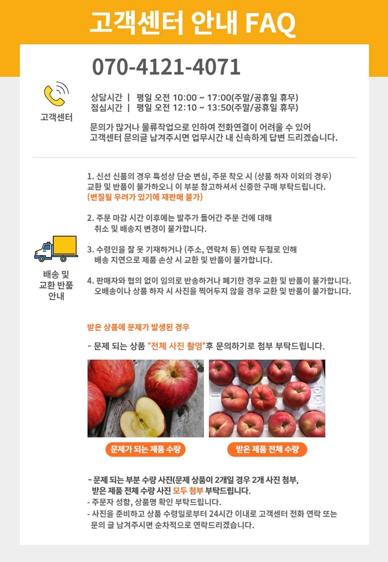 - ㆍ교환/반품에 관한 일반적인 사항은 판매자가 제시사항보다 관계법령이 우선합니다.