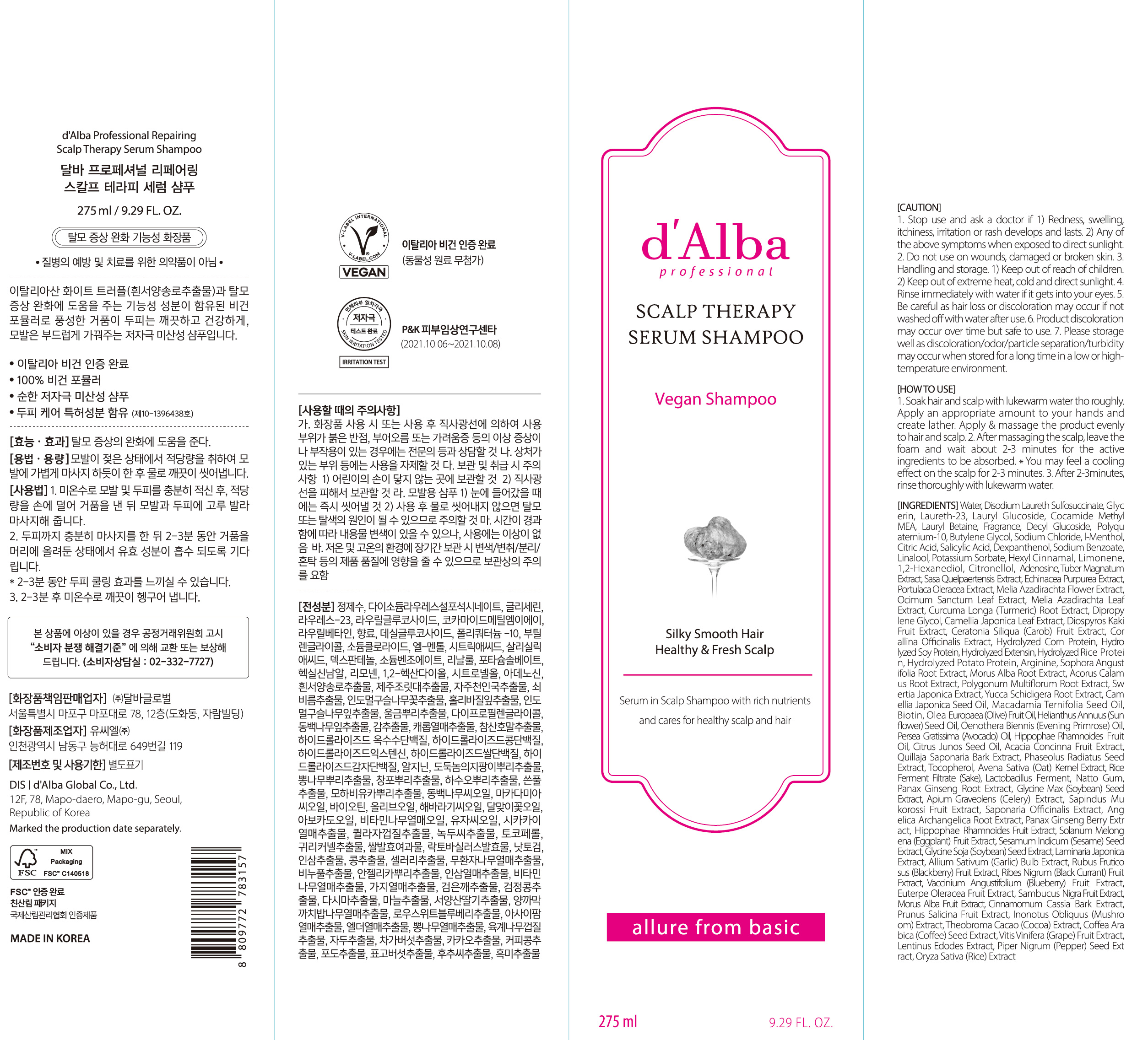 | 용량(중량) | 275ml | 제품 주요 사양 | 모든 모발용 |