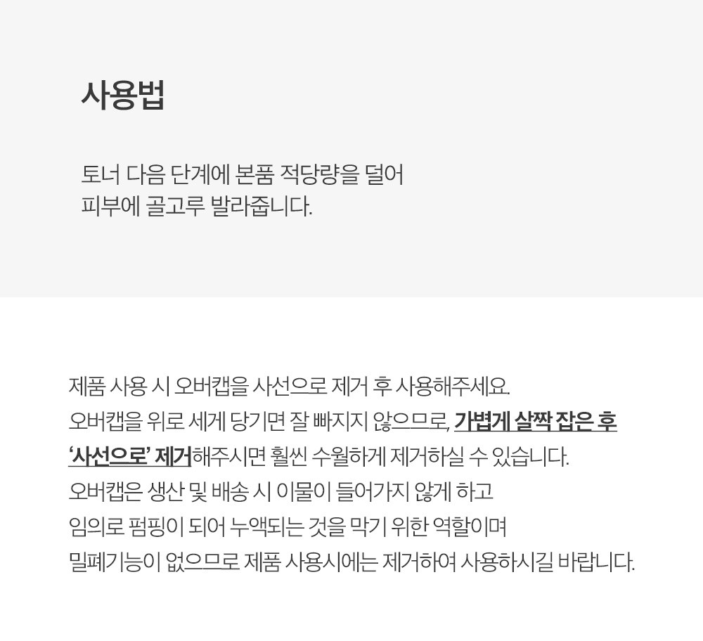 | 용량(중량) | 30ml | 제품 주요 사양 | 모든 피부용 |