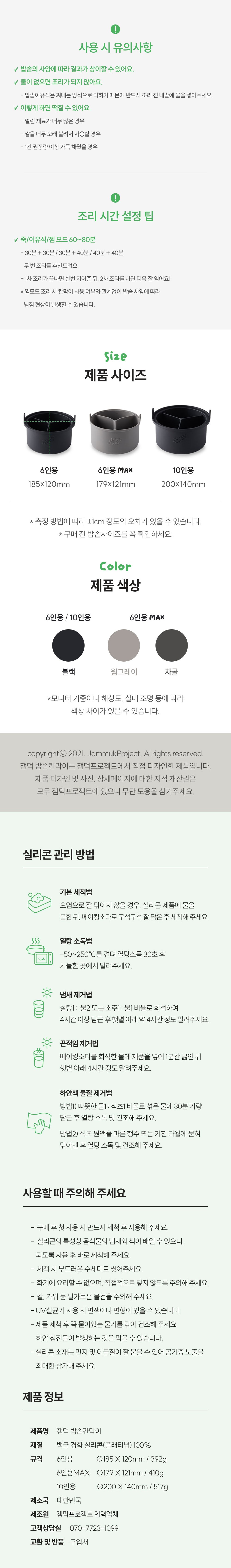 | 품명 및 모델명 | 잼먹 밥솥칸막이 6인용 MAX 챠콜 | 재질 | 컨텐츠 참조 |