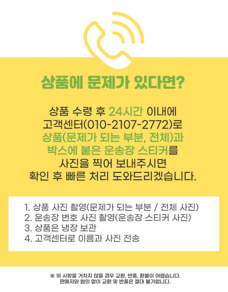 - ㆍ모니터 해상도의 차이로 인해 색상이나 이미지가 실제와 달라, 고객이 단순 변심으로 교환/반품을 무료로 요청하는 경우
