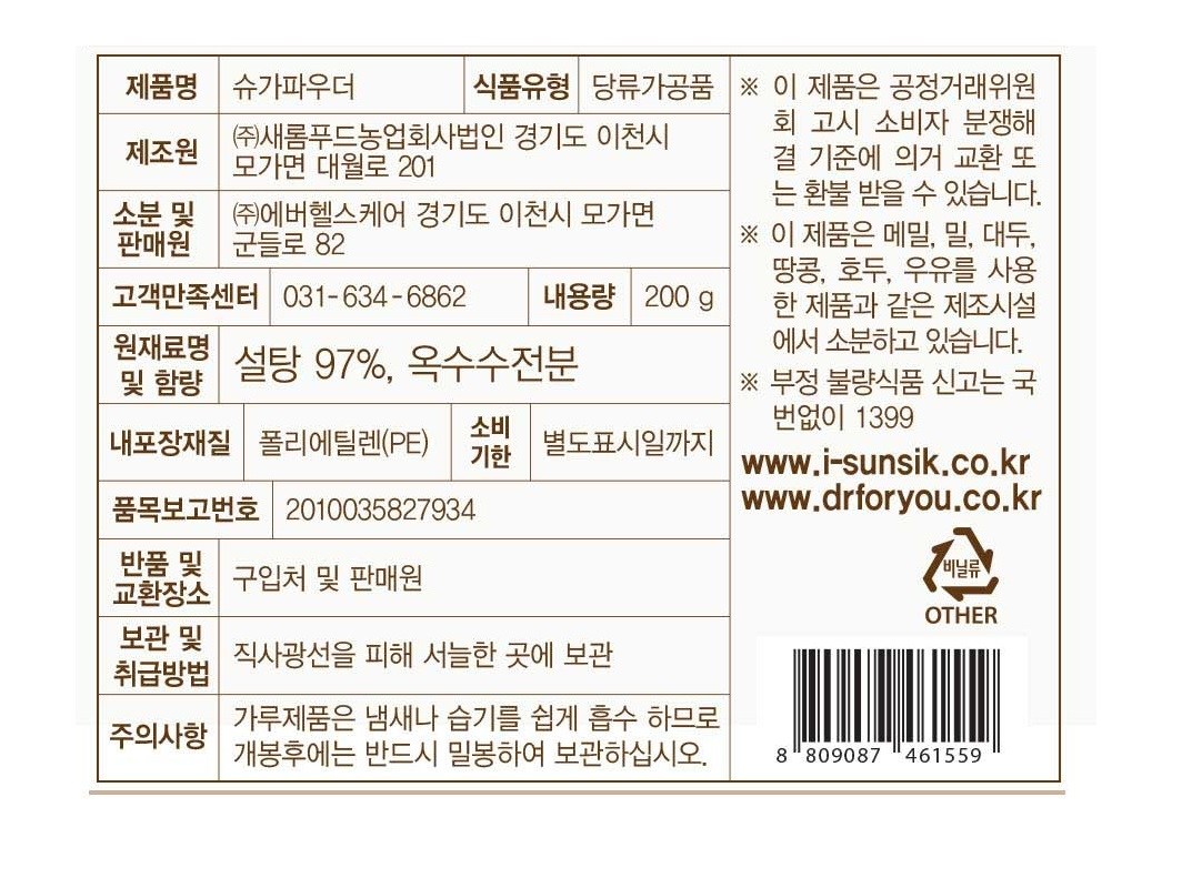 - 설탕/대체제 유형: 슈가파우더/분당