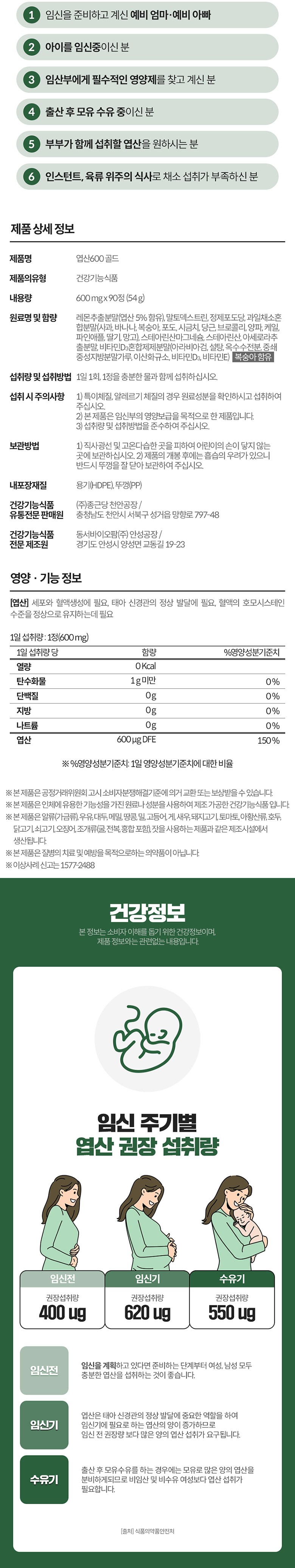 - 건강식품 사용대상: 임산부