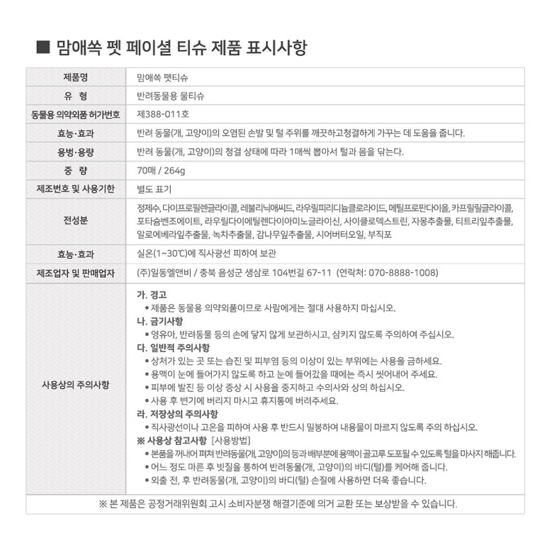 다만, 판매자의 제시사항이 관계법령보다 소비자에게 유리한 경우에는 판매자 제시사항이 적용됩니다.