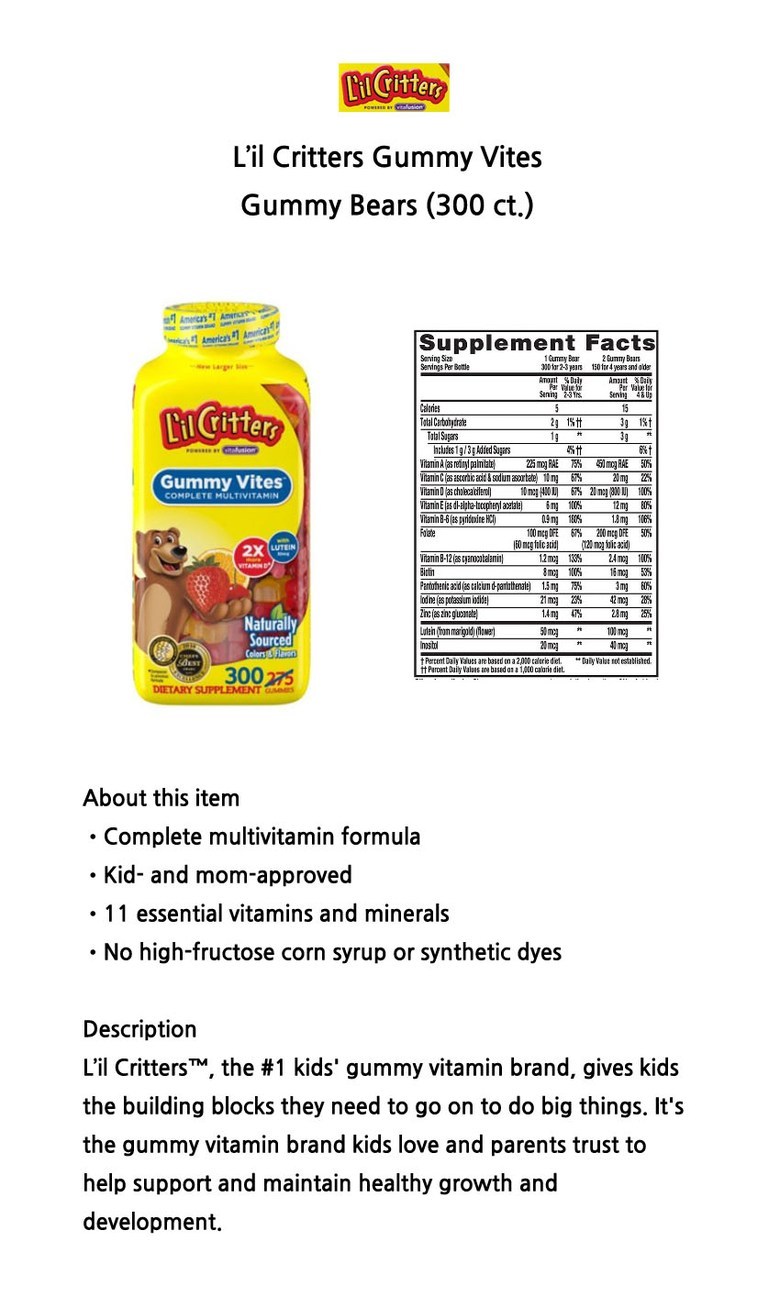- 건강식품 사용대상: 어린이