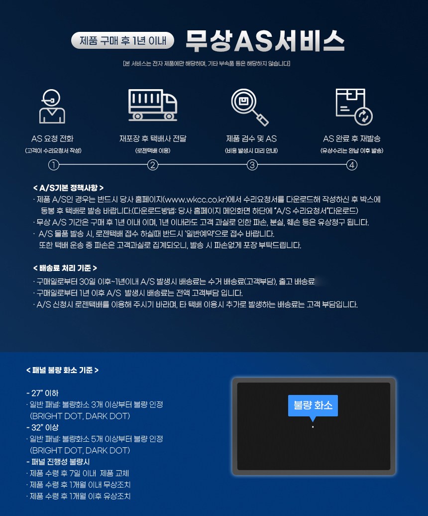 - ㆍ제조사의 사정 (신모델 출시 등) 및 부품 가격 변동 등에 의해 무료 교환/반품으로 요청하는 경우