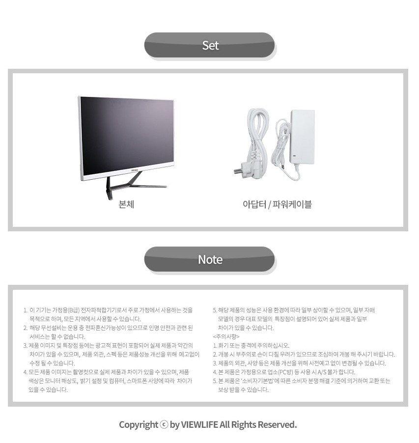 | 정격전압, 소비전력 | 컨텐츠 참조, 30W | 에너지소비효율등급 | 최저소비효율기준 만족 |