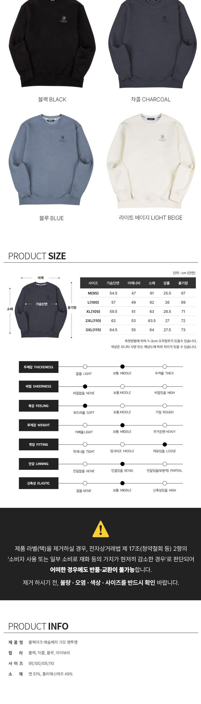 | 제품 소재 | 면 51%, 폴리에스테르 49% | 색상 | 블랙, 블루, 차콜, 라이트베이지 |