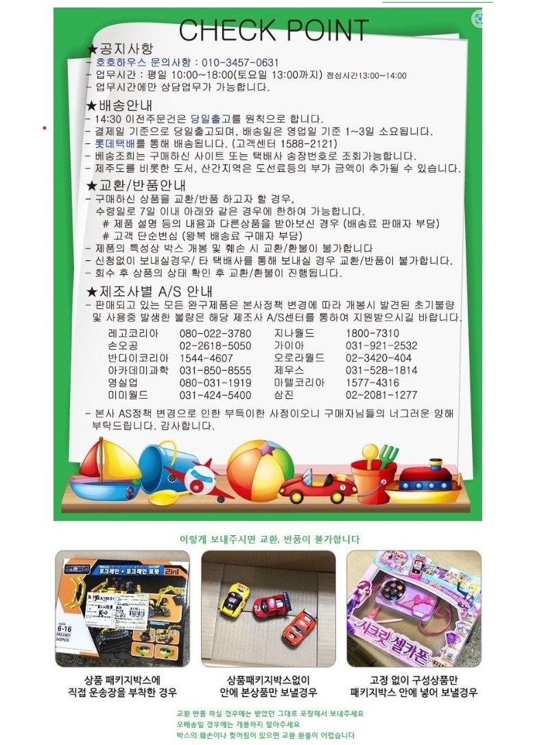 - ㆍ교환/반품에 관한 일반적인 사항은 판매자가 제시사항보다 관계법령이 우선합니다.