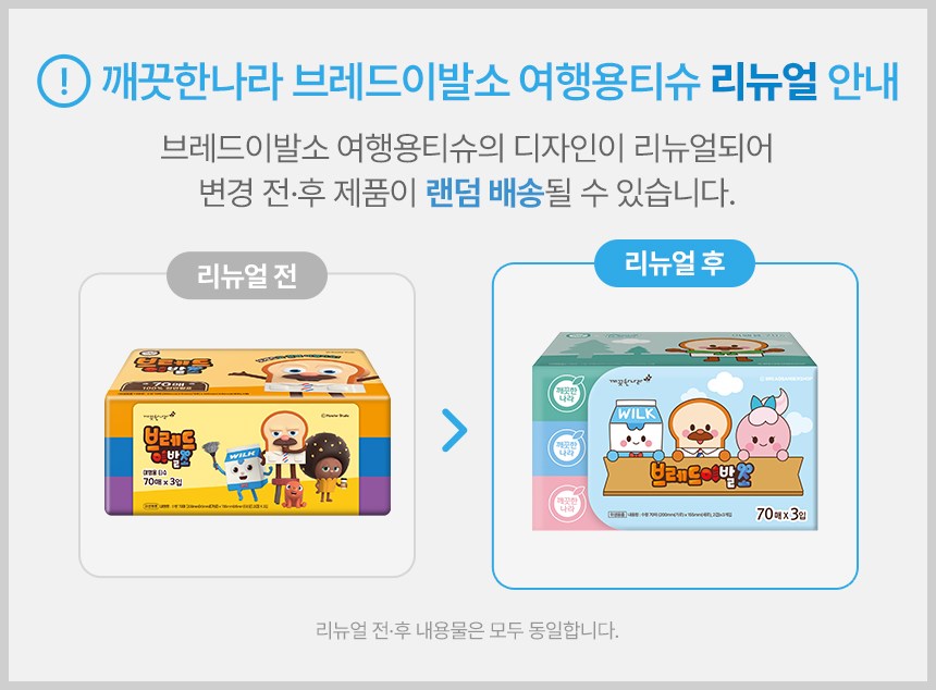 | 품명 및 모델명 | 깨끗한나라 여행용티슈 | 인증/허가 사항 | 위생용품 |