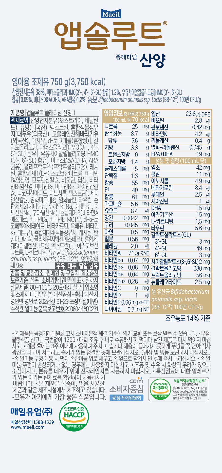 - 분유포장형태: 통
