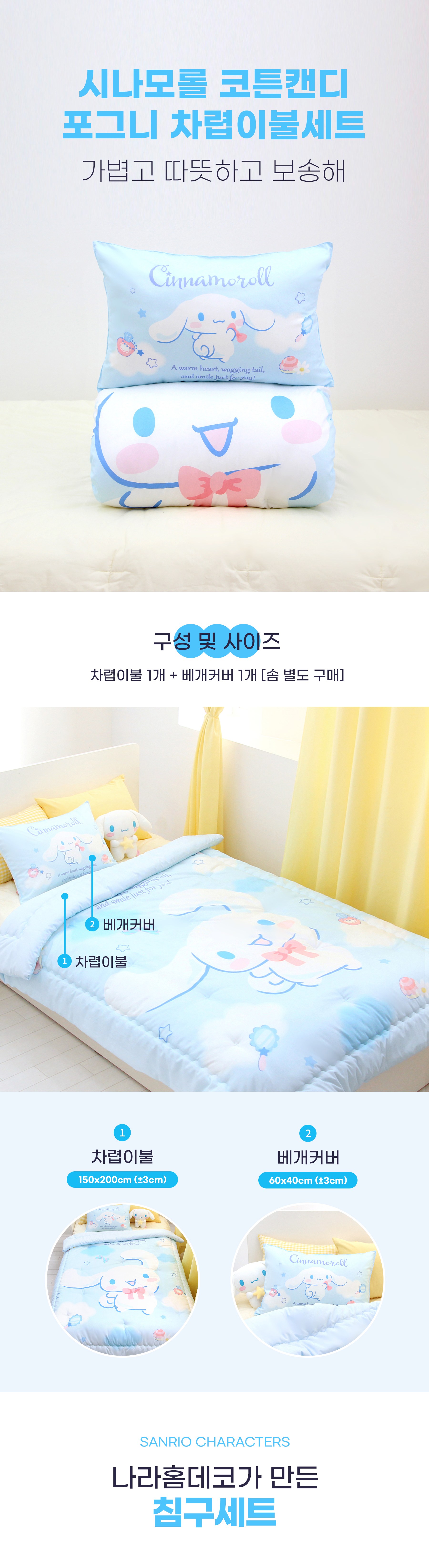 | 품명 및 모델명 | 시나모롤 차렵이불 + 베개커버 세트 | KC 인증정보 | 유/KC마크 |