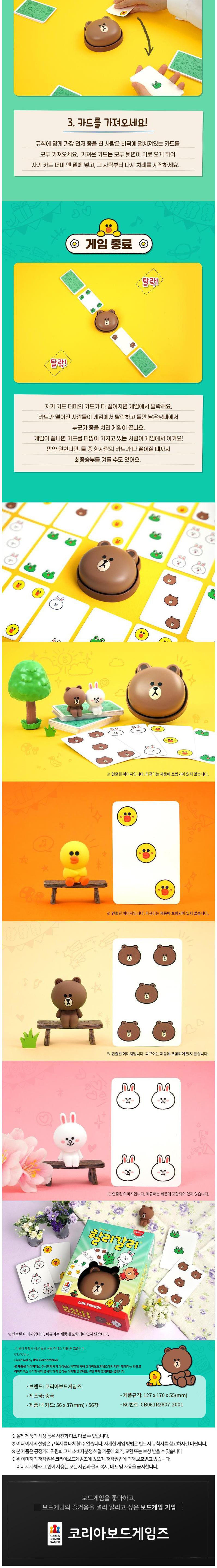 | 품명 및 모델명 | 코리아보드게임즈 할리갈리 라인프렌즈 보드게임 / KBG-CH04BI6 | KC 인증정보 | CB061R2807-2001 |