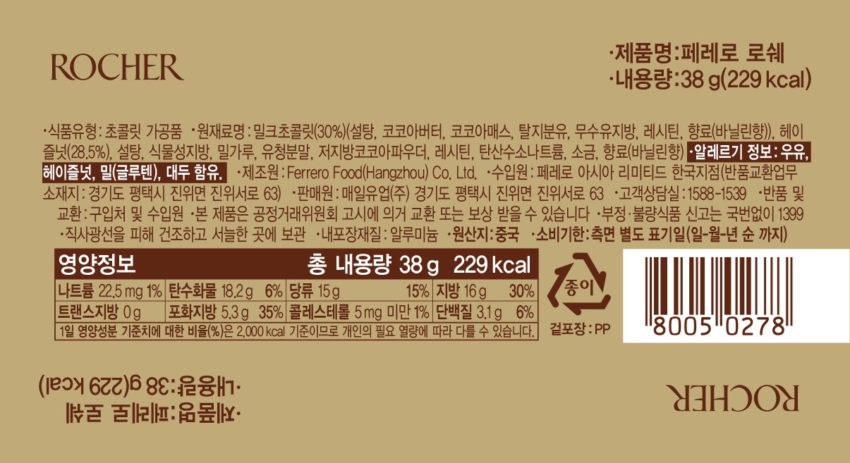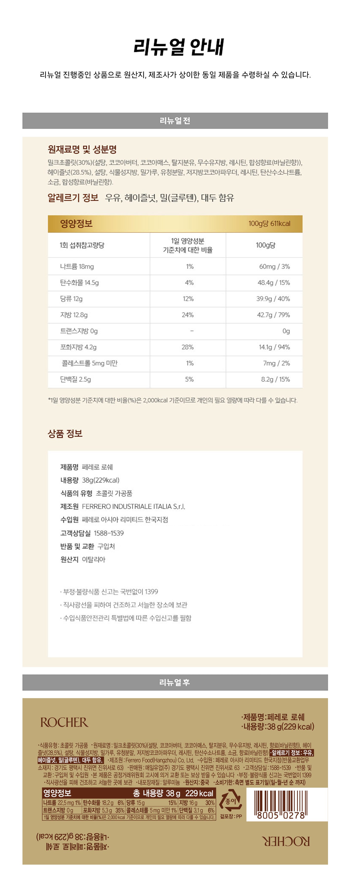 | 제품명 | 페레로 로쉐 38g | 식품의 유형 | 컨텐츠 참조 |