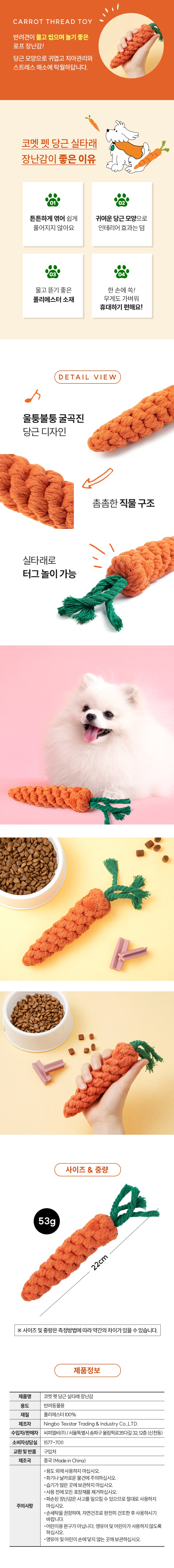 | 품명 및 모델명 | 코멧 펫 당근 실타래 장난감 | 인증/허가 사항 | 해당없음 |