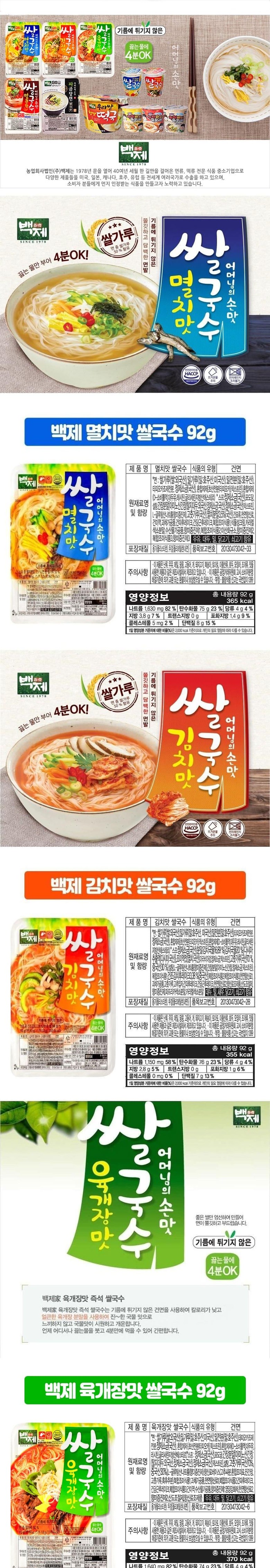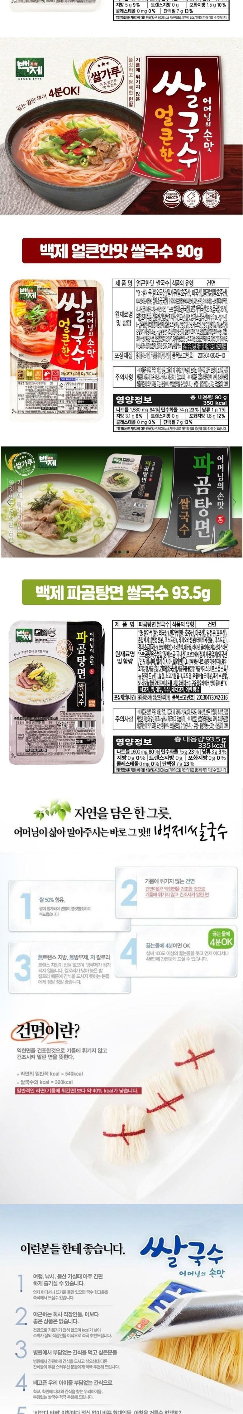 | 제품명 | 백제 쌀국수 멸치맛4개+김치맛4개+육개장맛4개+얼큰한맛4개+파곰탕면4개 | 식품의 유형 | 건면 |