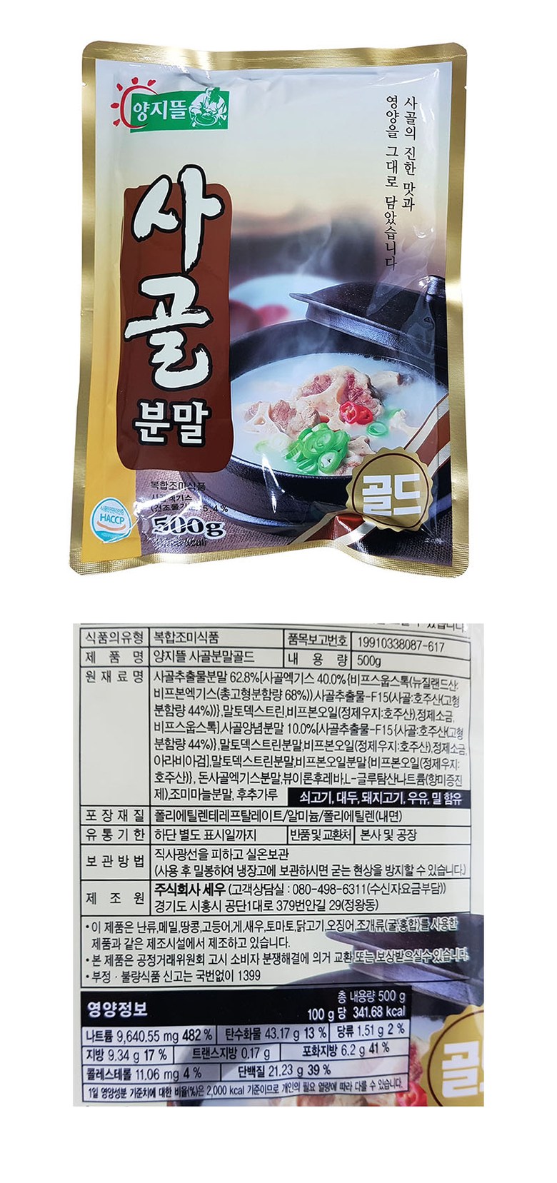| 제품명 | 양지뜰 사골분말골드 | 식품의 유형 | 복합조미식품 |