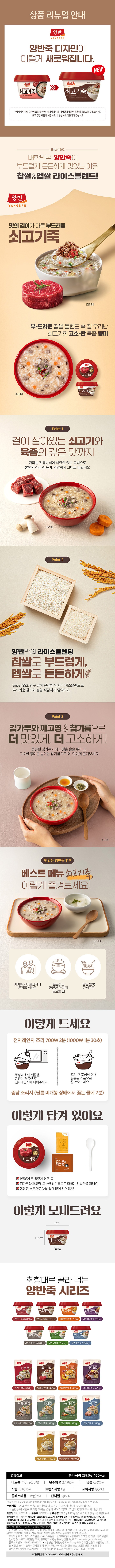| 포장단위별 내용물의 용량(중량), 수량 | 쇠고기죽 287.5g 6p + 전복죽 287.5g 6p, 1세트 | 원재료명 및 함량 | 컨텐츠 참조 |