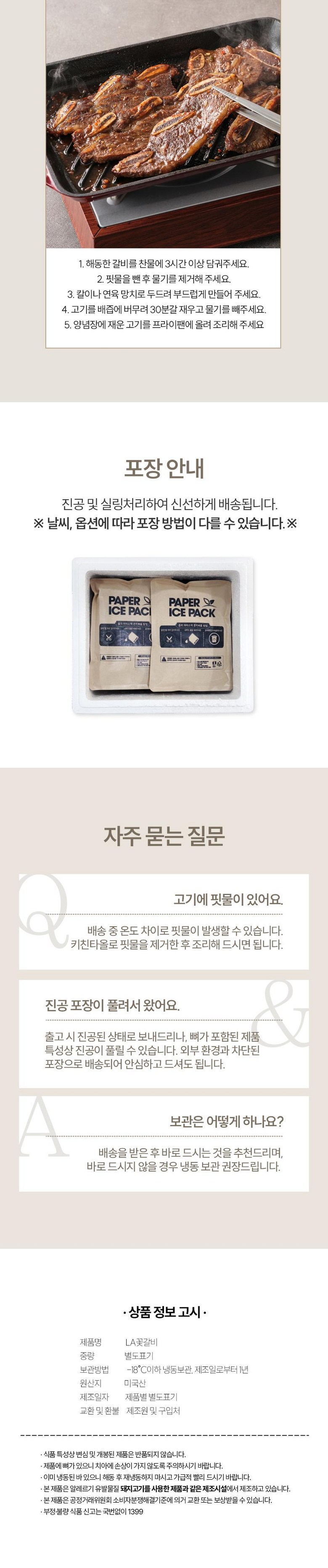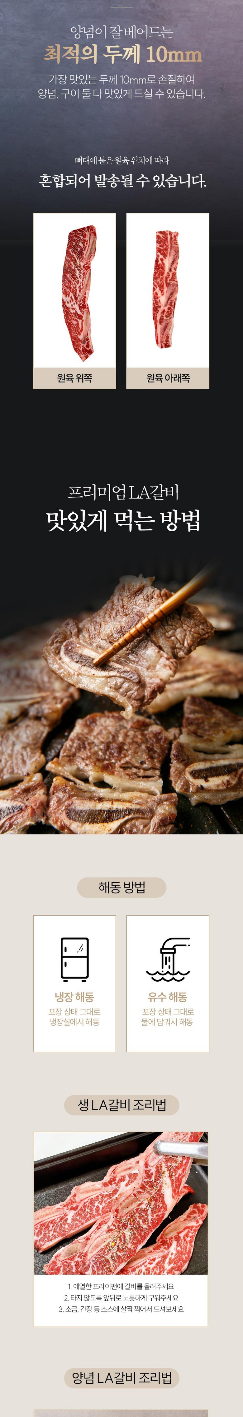 | 품목 또는 명칭 | 따봉프레시 LA갈비 (냉동) / 미국산 초이스 등급 | 포장단위별 내용물의 용량(중량),수량,크기 | 상품 상세페이지 참조 |