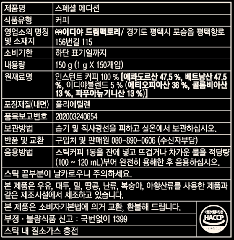 - 맛/향: 아메리카노/블랙