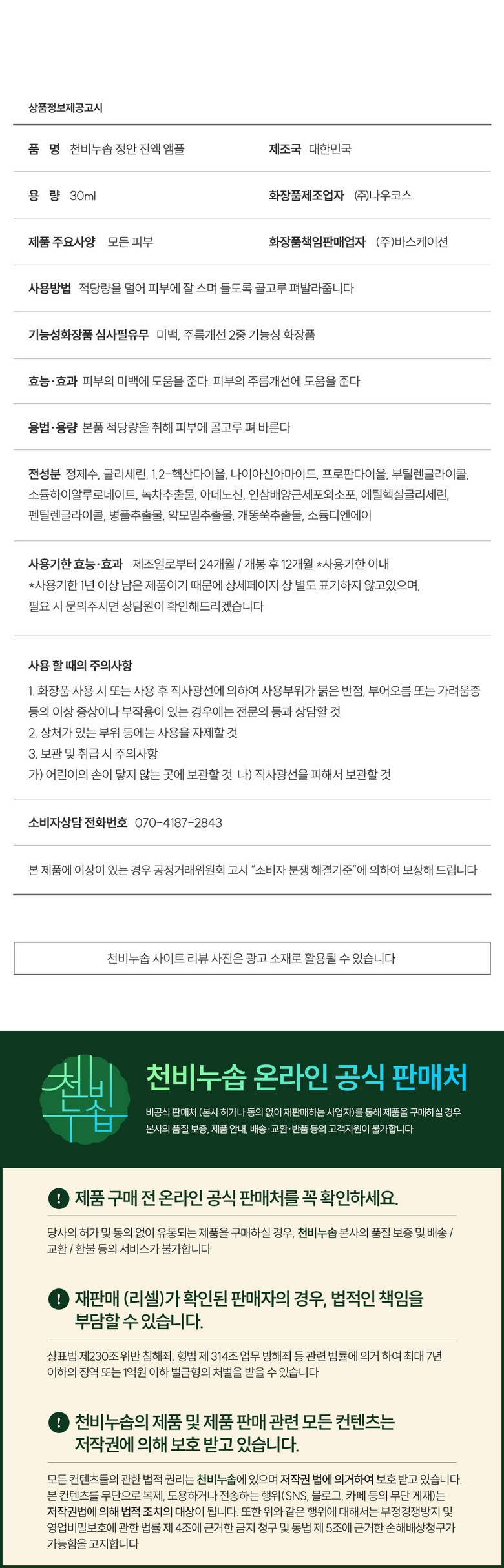 | 품명 및 모델명 | 천비누솝 정안고 진액앰플 | 인증/허가 사항 | 상품 상세페이지 참조 |