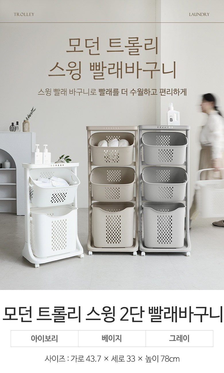 | 품명 및 모델명 | 모던 트롤리 스윙 2단 빨래바구니(그레이) | 인증/허가 사항 | 해당없음(14세이상) |