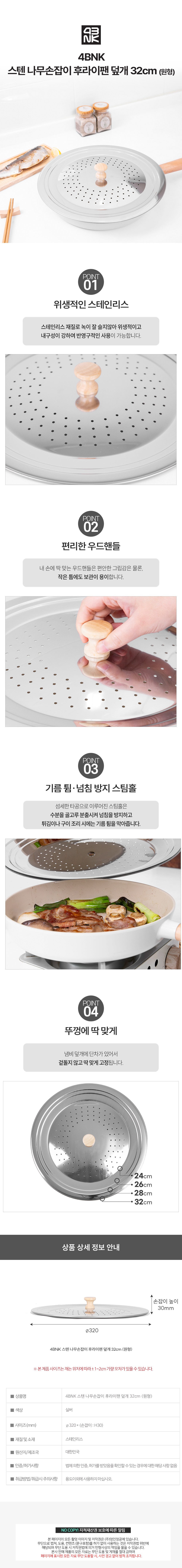 | 품명 및 모델명 | 4BNK 스텐 나무손잡이 후라이팬덮개(원형) | 재질 | 컨텐츠 참조 |
