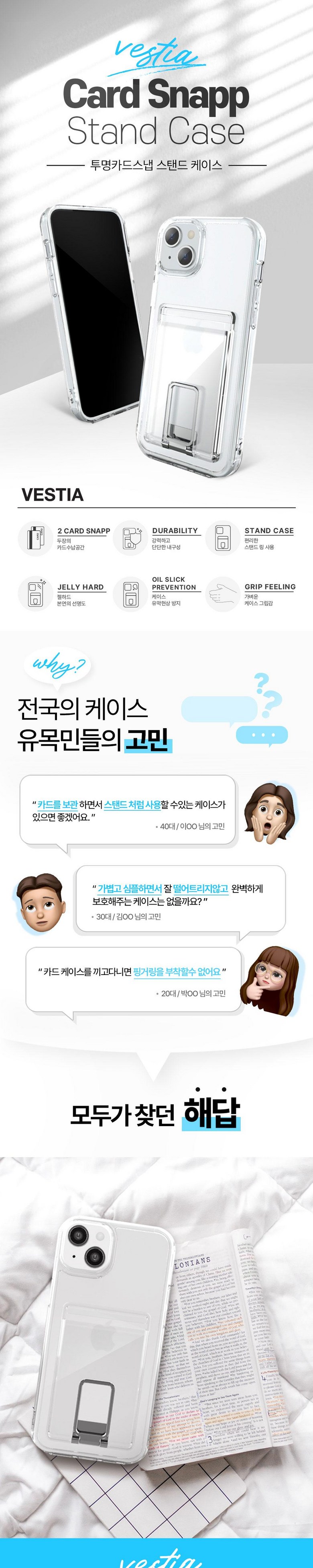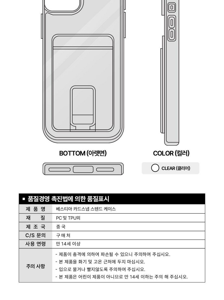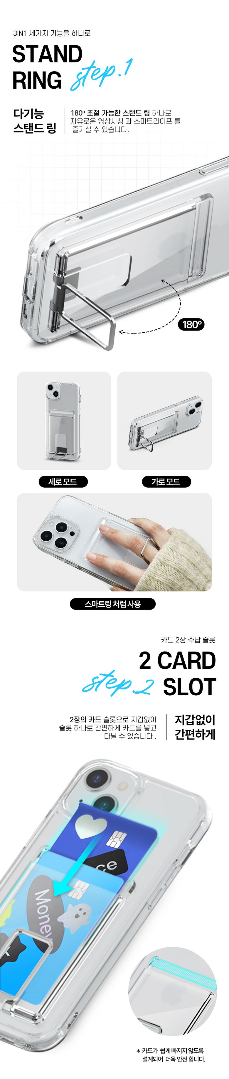 베스티아 카드 스냅 스탠드 투명 2장 수납 스마트 링 케이스