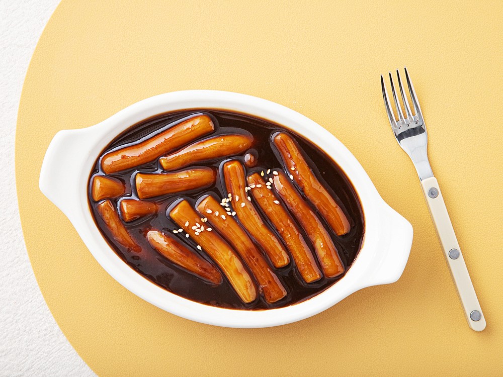 달달한 풍미로 색다르게 즐기는 짜장 떡볶이를 소개할게요. 쫀득한 밀 떡볶이 떡을 사용해, 떡볶이 국물을 잔뜩 머금고 있죠. 고소한 짜장 분말스프 덕분에 진한 감칠맛이 맴돌아 자꾸만 포크가 향한답니다. 간단하게 조리해 맛있는 한 끼를 즐겨보세요.
