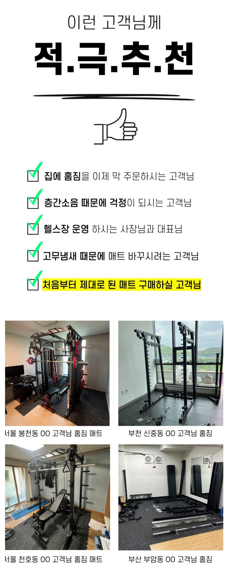 | 품명 및 모델명 | 희우스포츠 방음매트 방진매트 운동기구매트 | KC 인증정보 | 전기용품 및 생활용품 안전관리법에 따른 안전인증,안전확인,공급자적합성확인대상 제품에 한함 |