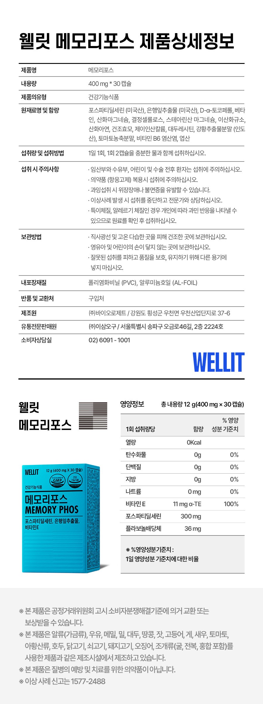 | 원료명 및 함량 | 컨텐츠 참조 | 영양정보 | 컨텐츠 참조 |