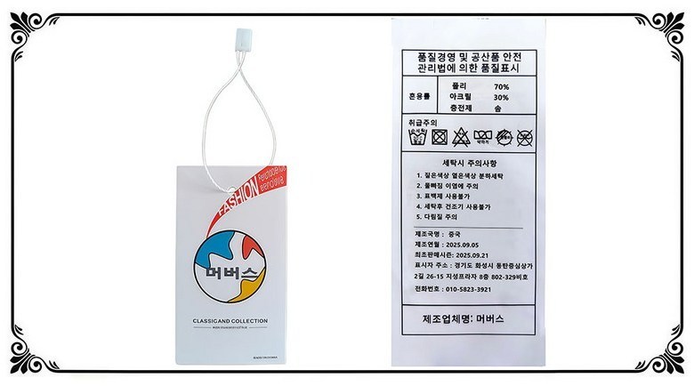 | 제조국 | 상품 상세페이지 참조 | 세탁방법 및 취급시 주의사항 | 상품 상세페이지 참조 |