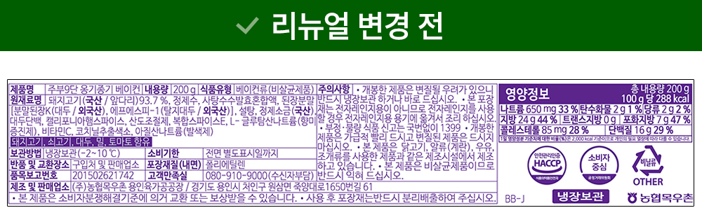 | 포장단위별 내용물의 용량(중량), 수량 | 200g x 8개 | 원재료명 및 함량 | 컨텐츠 참조 |