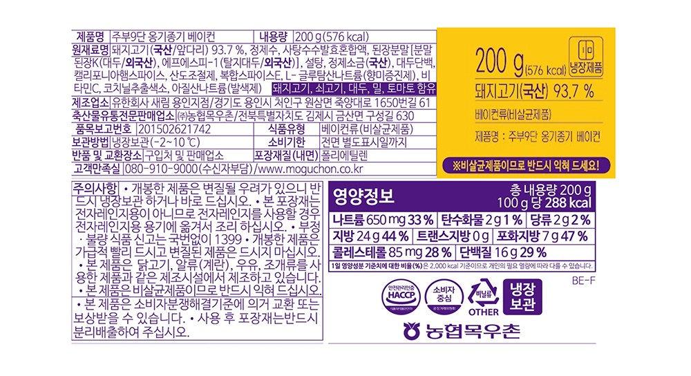 쫄깃한 식감과 은은한 고소함으로 많은 이들의 입맛을 사로잡는 식재료죠. 목우촌의 주부9단 옹기종기 베이컨을 소개할게요. 한 장씩 슬라이스 되어 있어 손쉽게 사용할 수 있는데요. 프라이팬에 노릇하게 구우면 특유의 풍미가 살아나죠. 샌드위치에 넣거나, 피자나 파스타의 재료로 활용해 보세요. 집에서도 근사한 이탈리안 스타일의 식사를 즐기실 수 있을 거예요.