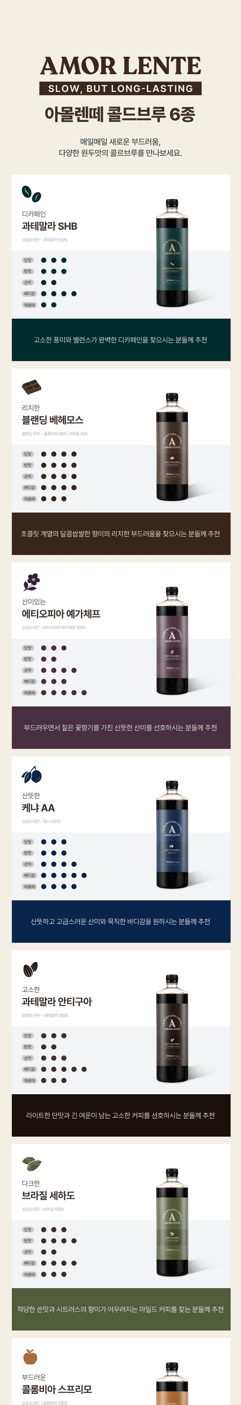 | 제품명 | 아몰렌떼 1리터 대용량 에티오피아 예가체프 더치커피 콜드브루 원액 | 식품의 유형 | 커피 |